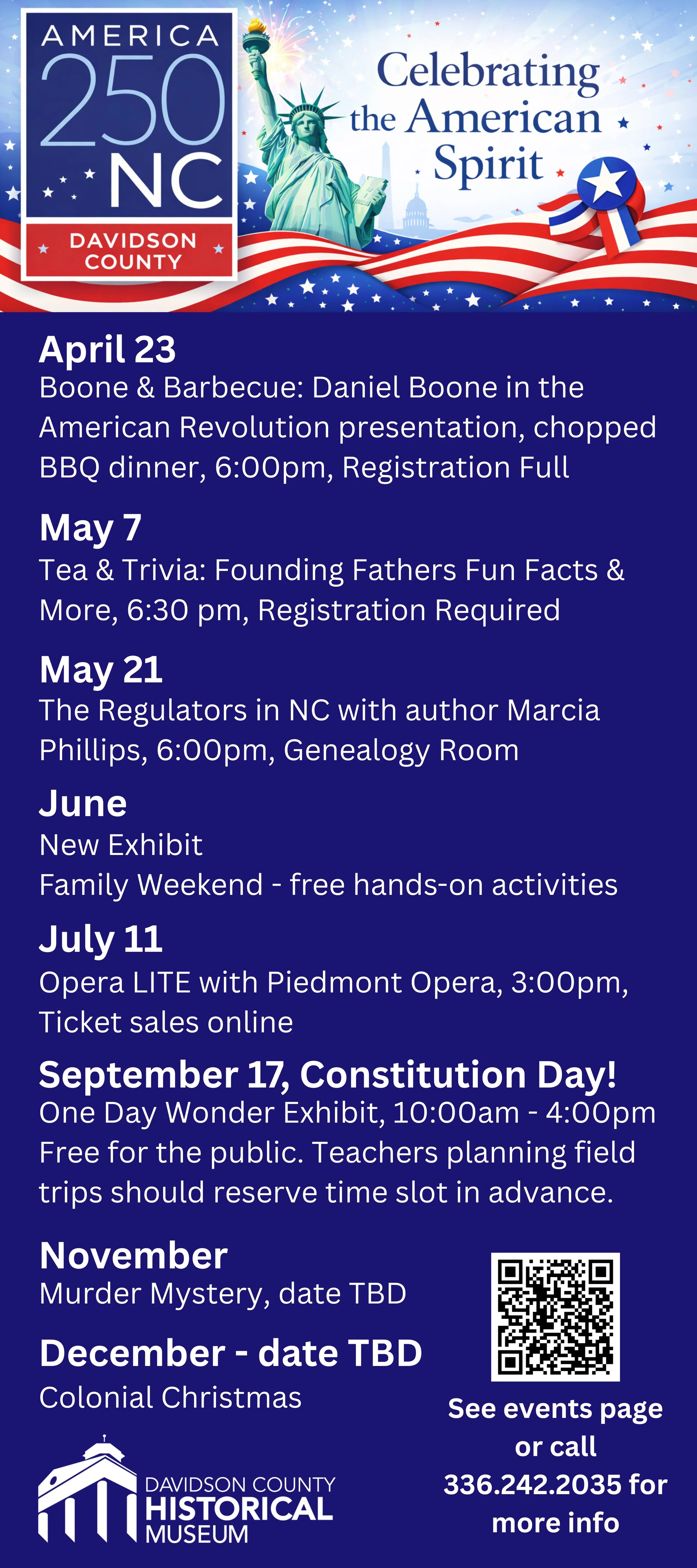 Call 336-242-2035 or email dch.museum@davidsoncountync.gov